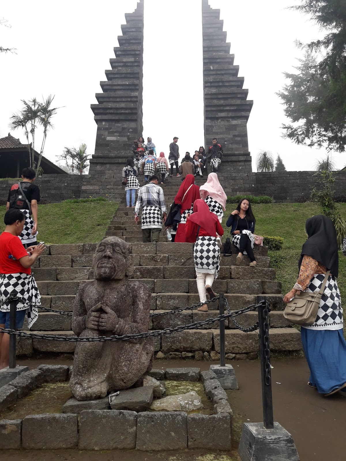 masuk Candi Cetho, kita diminta memakai sarung hitam putih. Ini sarung yang